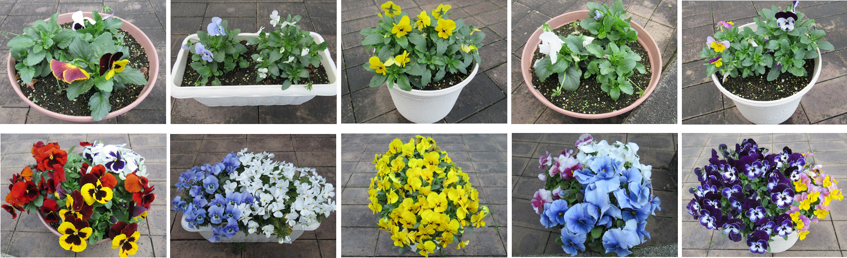 ( 上段が植えたばかりの10月に撮影 → 下段が4月に撮影 )