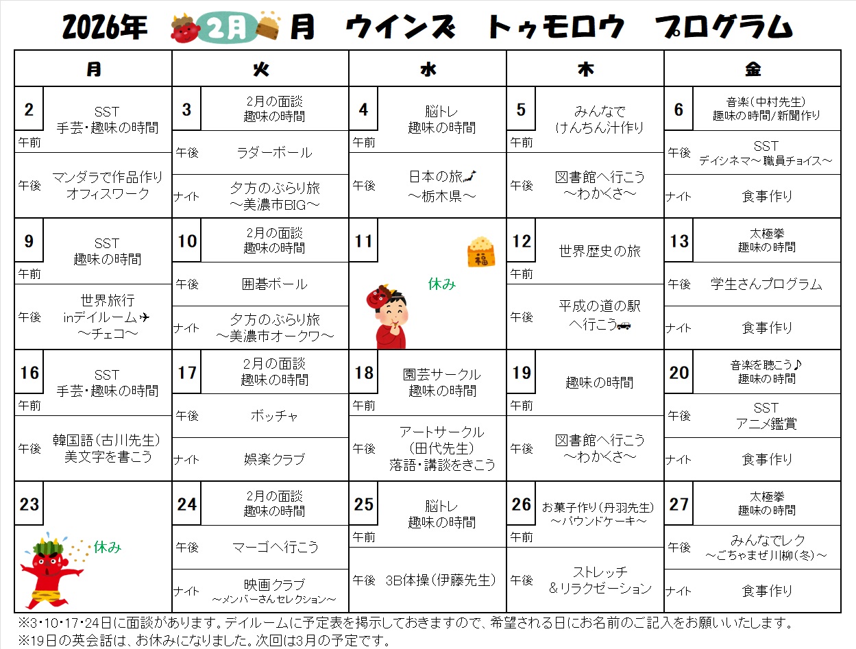 2026年2月のプログラム