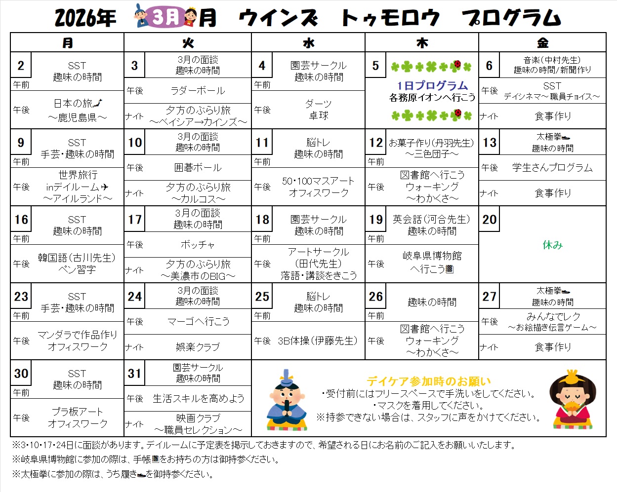 2026年3月のプログラム