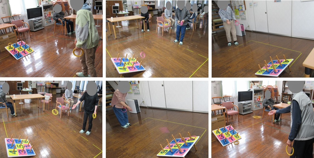 1回につき投げる輪は3本。参加者6人が順に投げ、